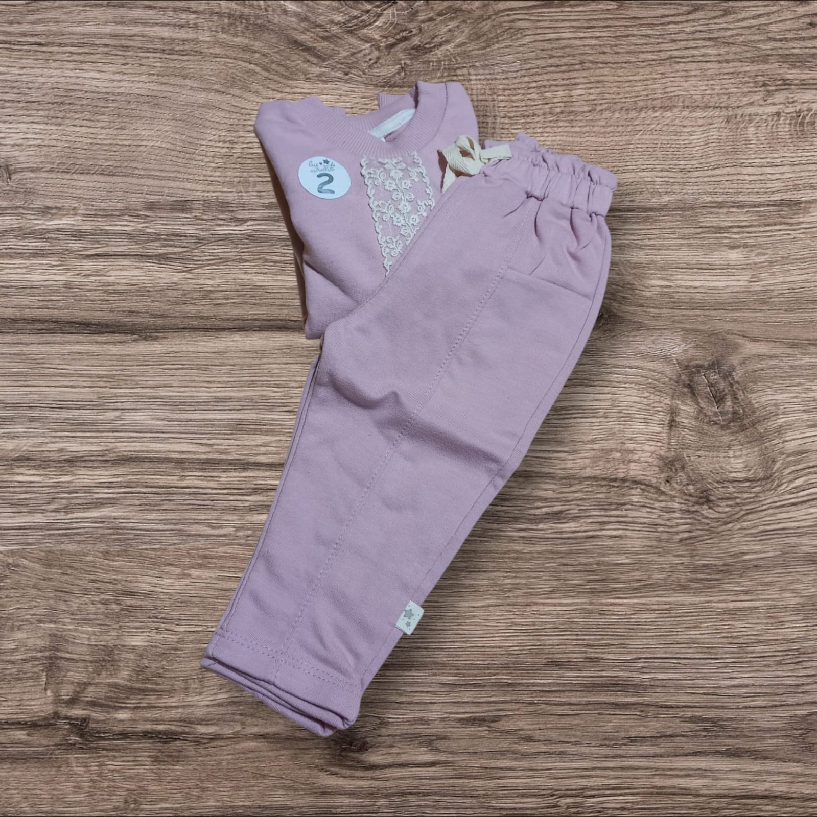 conjunto de algodon rustico buzo con detalle de puntilla y pantalón talle 2