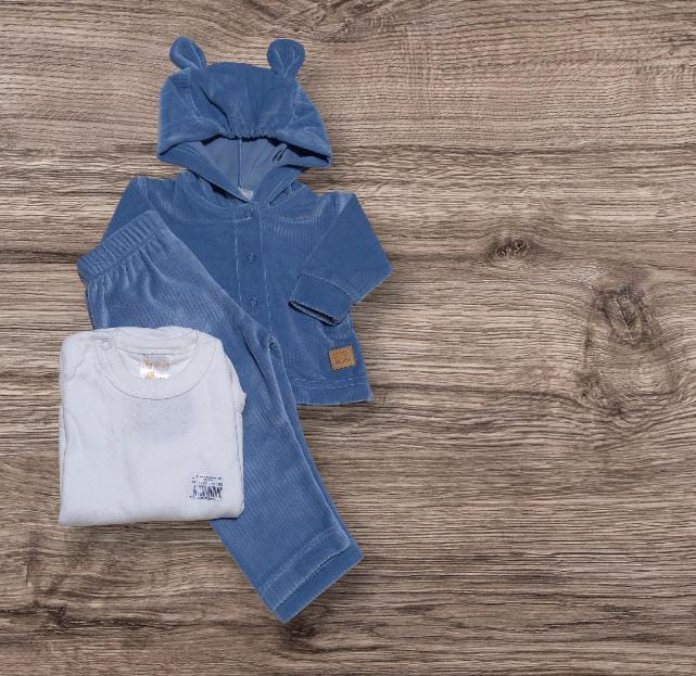 Conjunto campera con orejitas y pantalón de plush acanalado