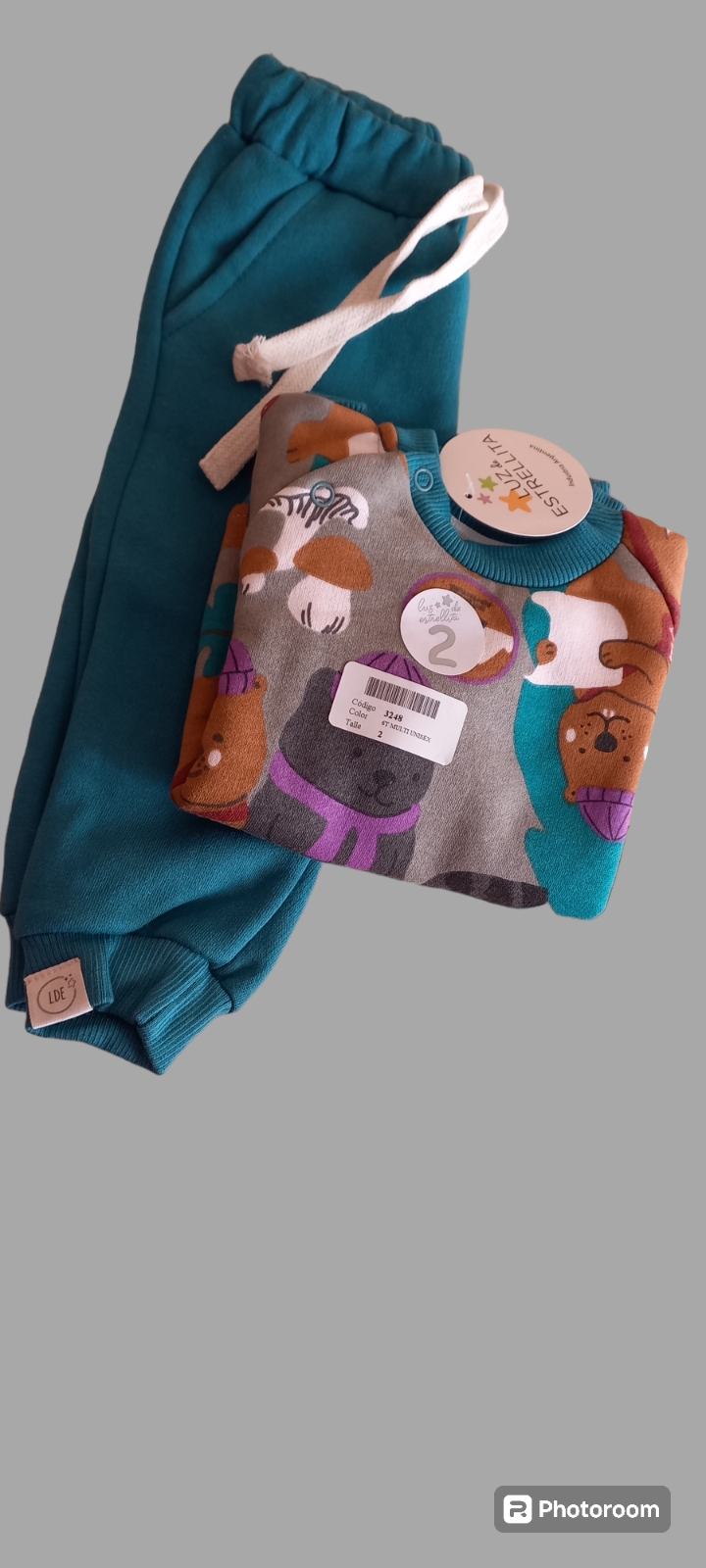 Conjunto de algodon buzo estampado y pantalón liso